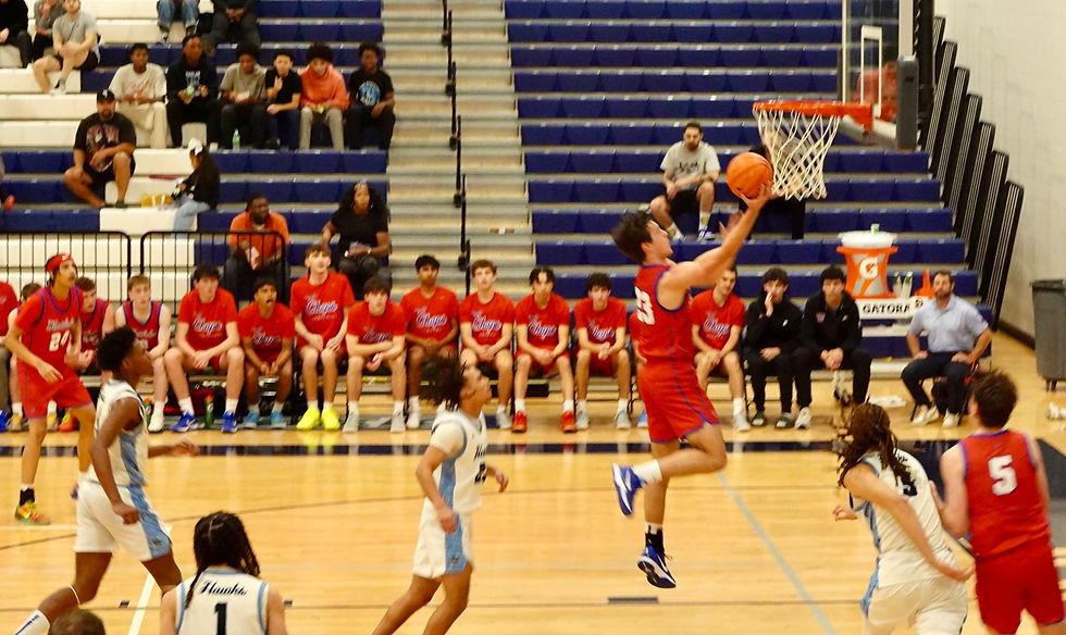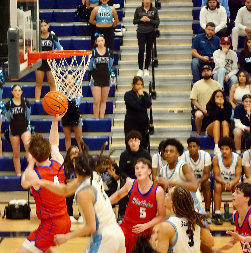 Texas 6A Basketball-Area Playoff-New Braunfels Texas-NB Long Creek High School, Friday Evening February 27th 2026. Westlake took an early lead on a three from #24 Mack Martin, then fouled on a three Mack completed three Free Throws for a 6-0 Westlake lead. End of Q1 Westlake 13 Harlan 12. Westlake then outscored Harlan 13-7 in Q2 to lead by 7, 26-19 at the intermission. Westlake widened the margin to 15 with a 17-9 Q3 for the 43-28 lead. In control and with the clock becoming an issue, Harlan fouled much and Westlake made free throws for a 23-18 Q4 and the 66-46 Area Championship win. Above the battle for the tip with #5 Bo Odgen controlling the tip over Harlan's #3 6'8" Amoni Francis. Francis reportedly averaged 13 PPG and 10 RPG amassing 398 points this season [MaXPreps]. Looking on is #5 London Jackson 6'6" 19.6 PPG 9RPG and 609 points [MaXPreps]. See more images below.