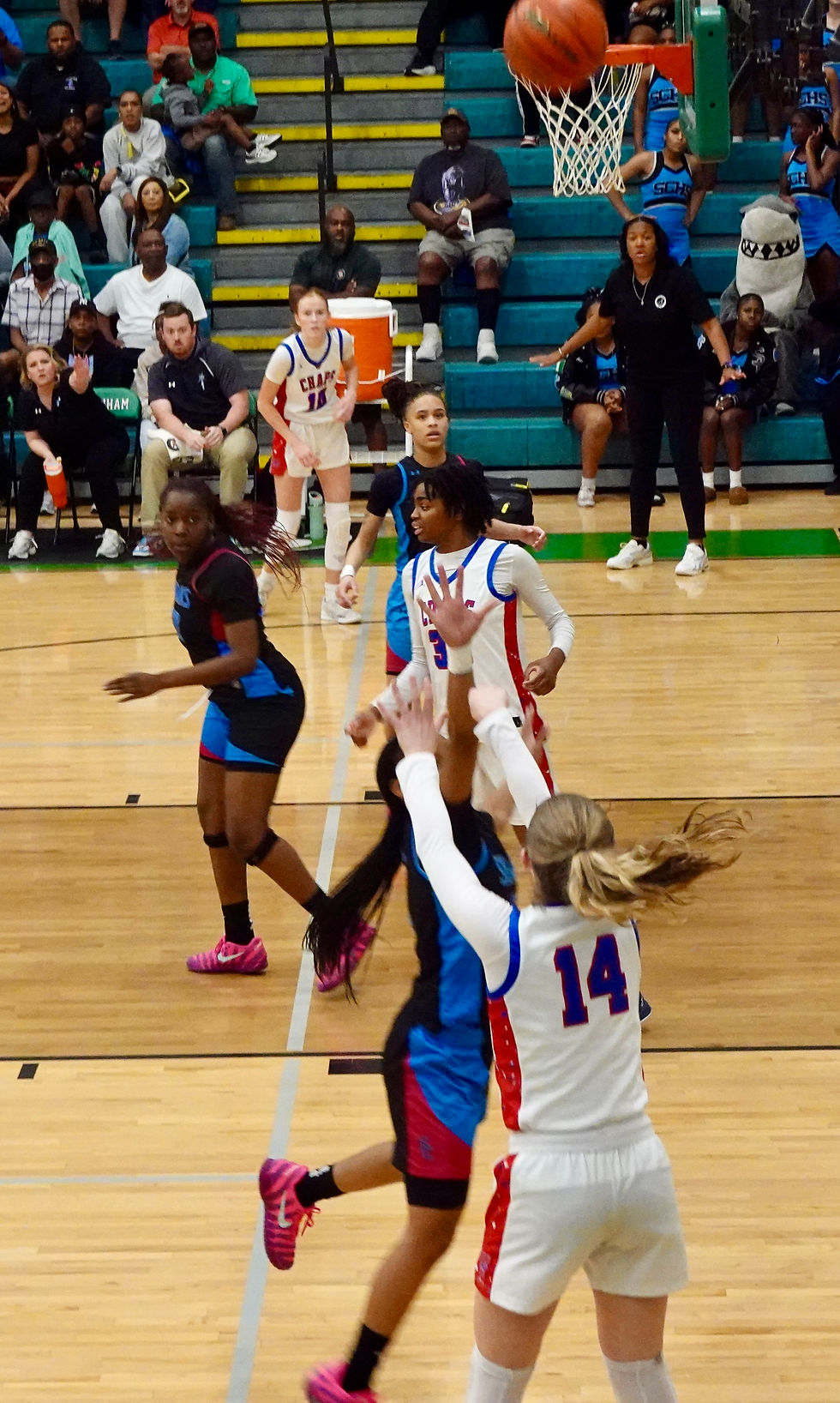The ending was a blur, after Shona Gilbert missed the FT, Lewis ended up with the ball, shot quickly and missed and the backboard lite up indicating the end of the game. #2 Townsend Hamilton led the celebratory victory dash towards those rushing off the Westlake bench.