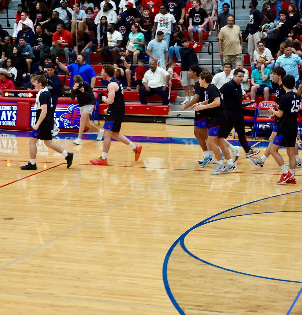 With 3.2 seconds left and trailing 46-49, Judson rushed the ball upcourt but their last shot fell short as time expired. Above the fans react and below the bench clears to meet the team on the floor.